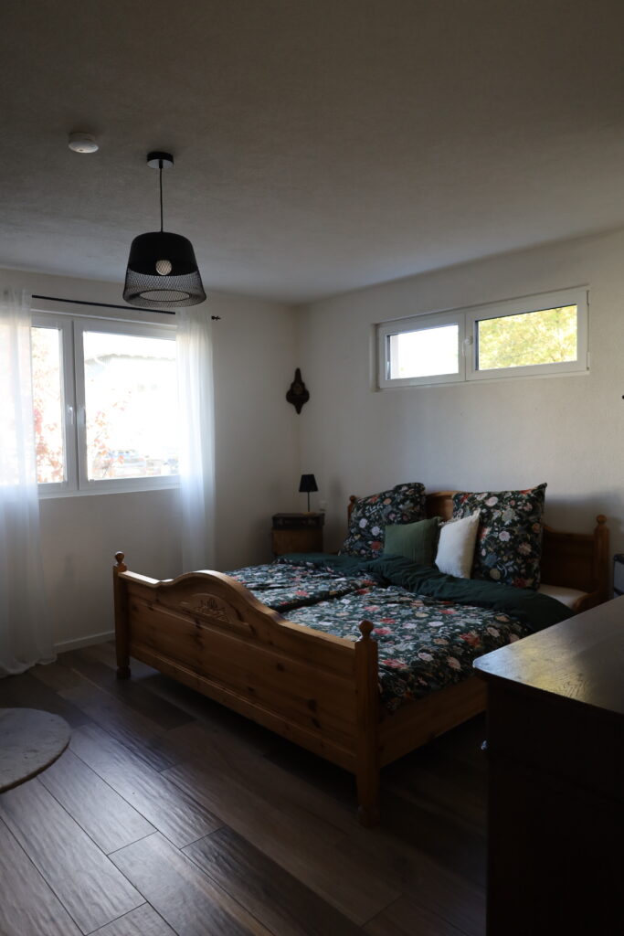 Mit großen Kingsize-Bett 2x2m und einem weiterernSchlafzimmer mit zwei Einzelbetten 1×1,90m